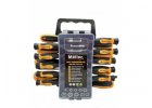 Kompletná sada skrutkovačov uložená v plastovom držiaku.